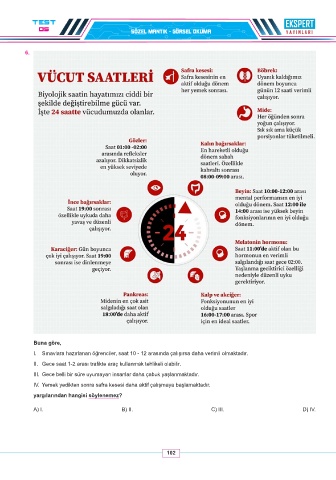 I. Sınavlara hazırlanan öğrenciler, saat 10 - 12 arasında çalışırsa daha verimli olmaktadır.