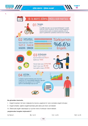 III. Ülkemizde engelli vatandaşlar için ayrılan memur kontenjanı bulunmaktadır.