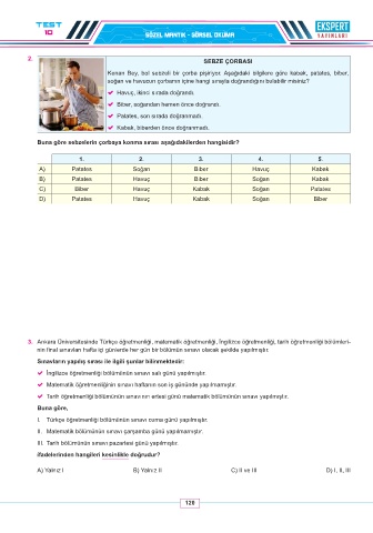 Buna göre sebzelerin çorbaya konma sırası aşağıdakilerden hangisidir?