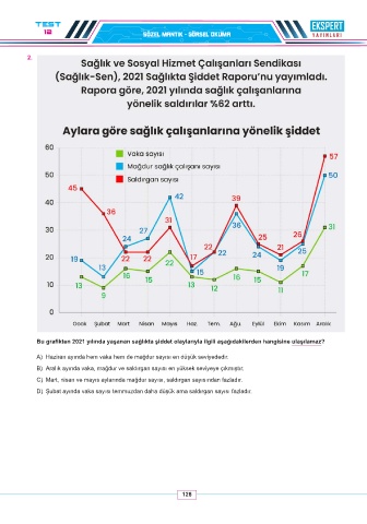 Bu grafikten 2021 yılında yaşanan sağlıkta şiddet olaylarıyla ilgili aşağıdakilerden hangisine ulaşılamaz?