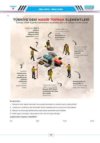 III. Malatya ve Konya gibi şehirlerimizde nadir toprak elementleri bulunmaktadır.