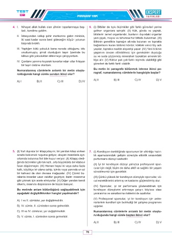 4. I. Nihayet allak bullak olan zihnim toparlanmaya baş- 6. (I) Bitkiler de tıpkı bizimkiler gibi farklı görevleri yerine