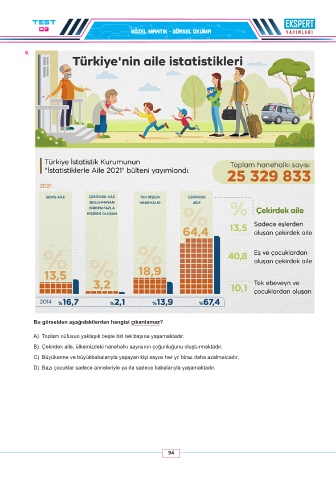 B) Çekirdek aile, ülkemizdeki hanehalkı sayısının çoğunluğunu oluşturmaktadır.