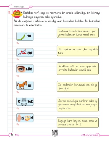 11. Resfebe; harf, sayı ve resimlerin bir arada kullanıldığı, bir kelimeyi
