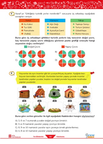 5 Yusuf’un “Gittiğiniz turistik yerler nerelerdir?” sorusuna üç arkadaşı aşağıdaki