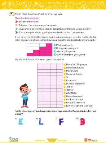 Eşya isimleri farklı elektrik kaynakları ile çalışan araç gereçlerden seçilmiştir. Ka-
