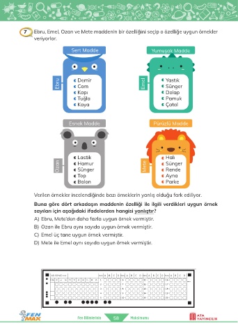 7 Ebru, Emel, Ozan ve Mete maddenin bir özelliğini seçip o özelliğe uygun örnekler