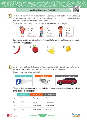 1 Hilal, içinde meyve veya sebze olan üç kutuyu oyun için sınıfa getiriyor. Hilal, üç