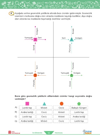 4 Aşağıda verilen geometrik şekillerin altında bazı cisimler gizlenmiştir. Geometrik