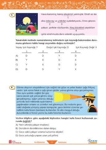 Yukarıdaki metinde numaralanmış kelimelerin ışık kaynağı bakımından duru-