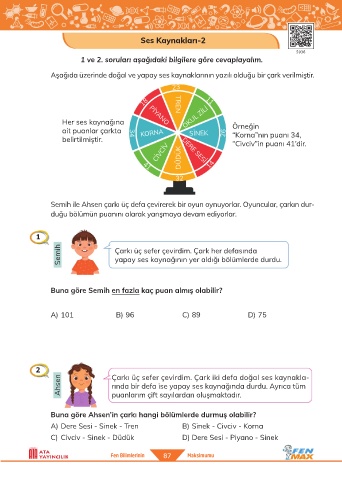 2 Çarkı üç sefer çevirdim. Çark iki defa doğal ses kaynakla-