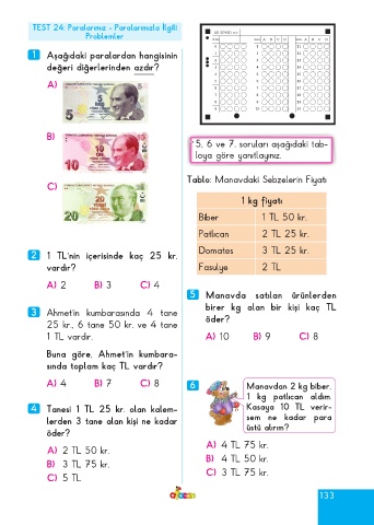 Page 133 - ATA YAYINCILIK 3. Sınıf Afacan Soru Bankası
