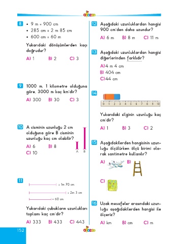 8 • 9 m = 900 cm 12 Aşa ğı daki uzun luk lar dan han gi si