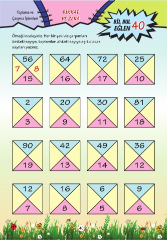 üstteki sayıya, toplamları alttaki sayıya eşit olacak