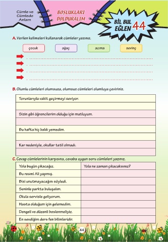 B. Olumlu cümleleri olumsuza, olumsuz cümleleri olumluya çeviriniz.