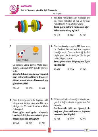 Test 10: Toplama İşlemi ile İlgili Problemler
