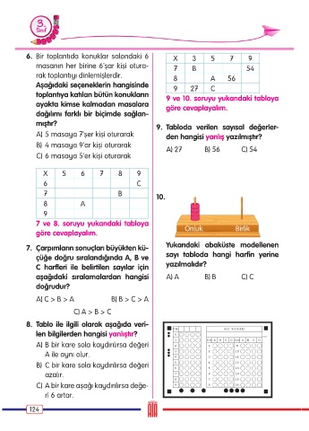 6. Bir toplantıda konuklar salondaki 6 X 3 5 7 9