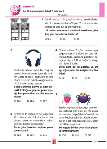 Test 19: Çarpma İşlemi ile İlgili Problemler 2