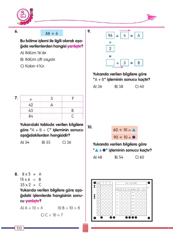 göre "A + B + C" işleminin sonucu 60 ÷ 10 = s
