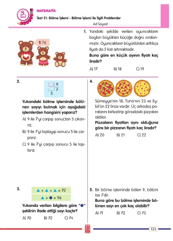 Test 21: Bölme İşlemi - Bölme İşlemi ile İlgili Problemler