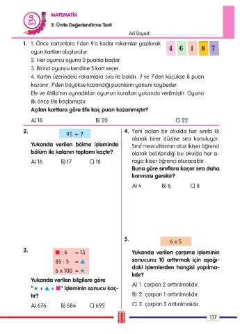 bölüm ile kalanın toplamı kaçtır? olarak belirlendiği bu okulda her sı-