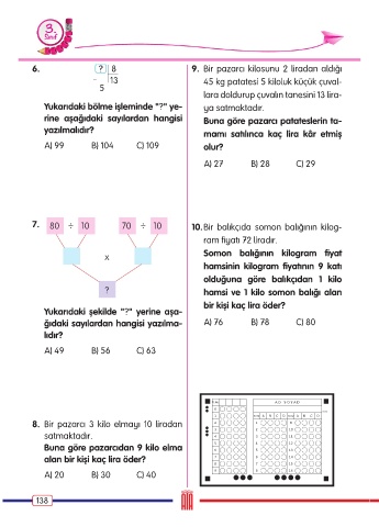 8. Bir pazarcı 3 kilo elmayı 10 liradan 2 1 9
