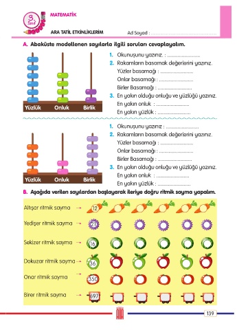A. Abaküste modellenen sayılarla ilgili soruları cevaplayalım.