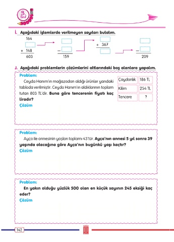 İ. Aşağıdaki işlemlerde verilmeyen sayıları bulalım.