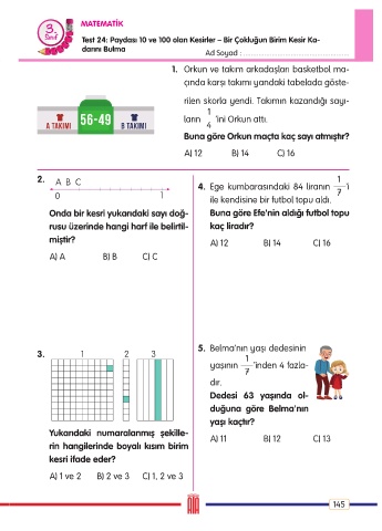 Test 24: Paydası 10 ve 100 olan Kesirler – Bir Çokluğun Birim Kesir Ka-