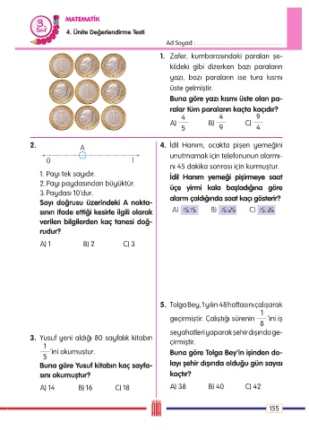 sının ifade ettiği kesirle ilgili olarak A) B) C)