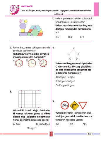 Test 30: Üçgen, Kare, Dikdörtgen Çizme - Köşegen - Şekillerin Kenar Sayıları