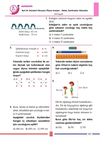 Test 34: Standart Olmayan Ölçme Araçları - Metre, Santimetre, Kilometre