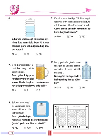 6. 9. Cemil amca ürettiği 20 litre zeytin