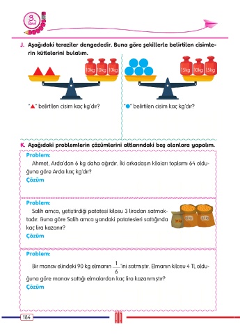 K. Aşağıdaki problemlerin çözümlerini altlarındaki boş alanlara yapalım.