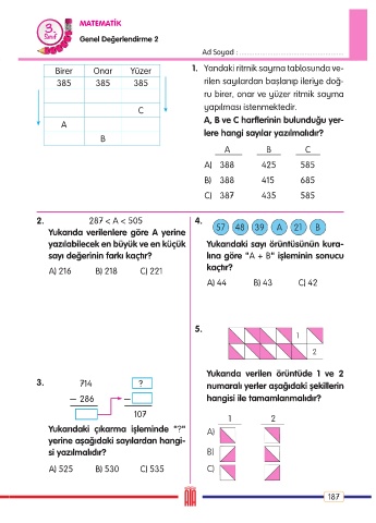 3. 714 ? numaralı yerler aşağıdaki şekillerin