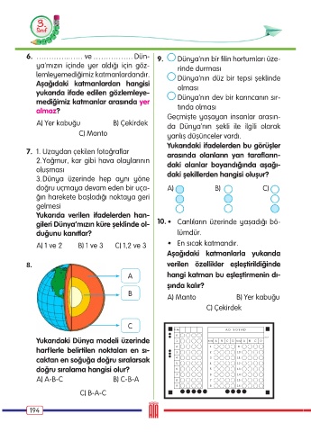 Yukarıdaki Dünya modeli üzerinde 1 Soru A B C D Soru A B C D 103871