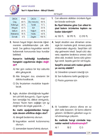 Page 272 - ÇITIR ÇITIR 3. SINIF TÜM DERSLER SORU BANKASI