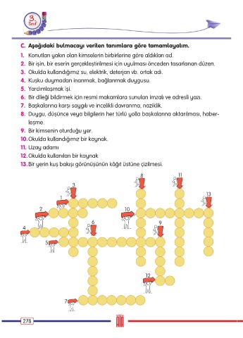 C. Aşağıdaki bulmacayı verilen tanımlara göre tamamlayalım.