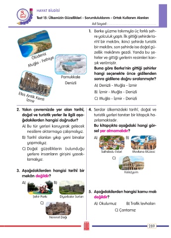 Test 15: Ülkemizin Güzellikleri - Sorumluluklarım - Ortak Kullanım Alanları