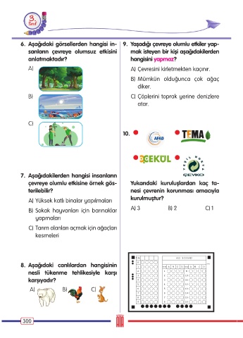 6. Aşağıdaki görsellerden hangisi in- 9. Yaşadığı çevreye olumlu etkiler yap-