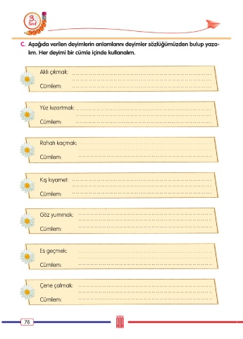 C. Aşağıda verilen deyimlerin anlamlarını deyimler sözlüğümüzden bulup yaza-