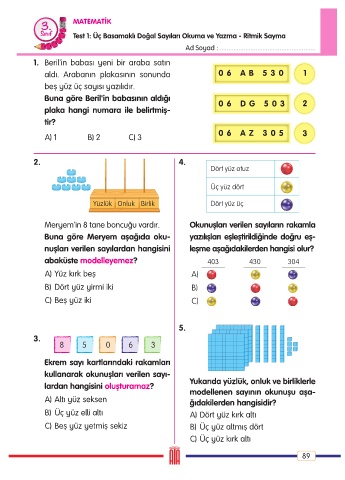 Test 1: Üç Basamaklı Doğal Sayıları Okuma ve Yazma - Ritmik Sayma