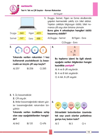Test 4: Tek ve Çift Sayılar - Romen Rakamları