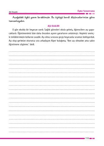 caklardı. Öğretmenimiz bize daha önceden aşının yararlarını anlatmıştı. Hepimiz sevinç-