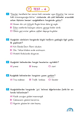 4 Aşağıdaki kelimelerden hangisinin yazımı yanlıştır?