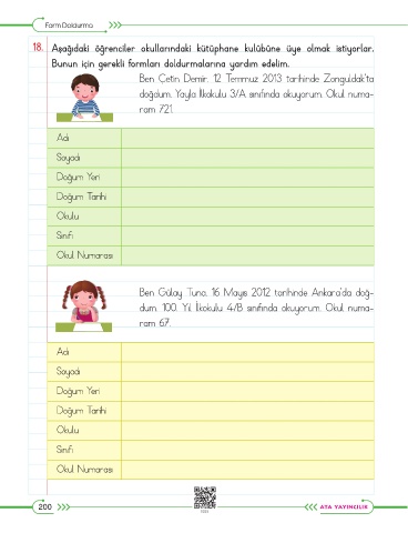18. Aşağıdaki öğrenciler okullarındaki kütüphane kulübüne üye olmak istiyorlar.