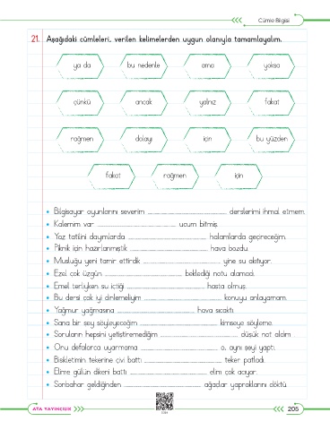 Page 206 - ATA YAYINCILIK 3. Sınıf Gıcır Gıcır Türkçe