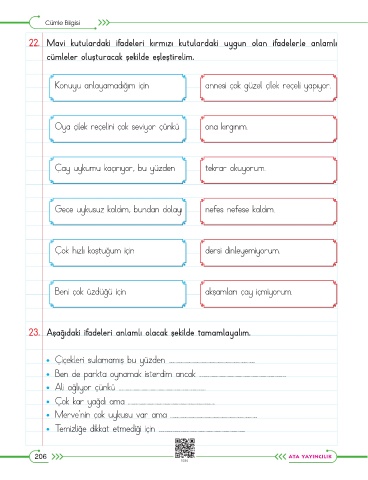 23. Aşağıdaki ifadeleri anlamlı olacak şekilde tamamlayalım.