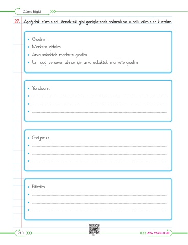 27. Aşağıdaki cümleleri örnekteki gibi genişleterek anlamlı ve kurallı cümleler kuralım.