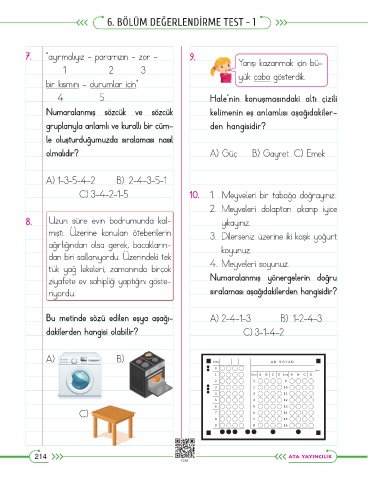 6. BÖLÜM DEĞERLENDİRME TEST - 1